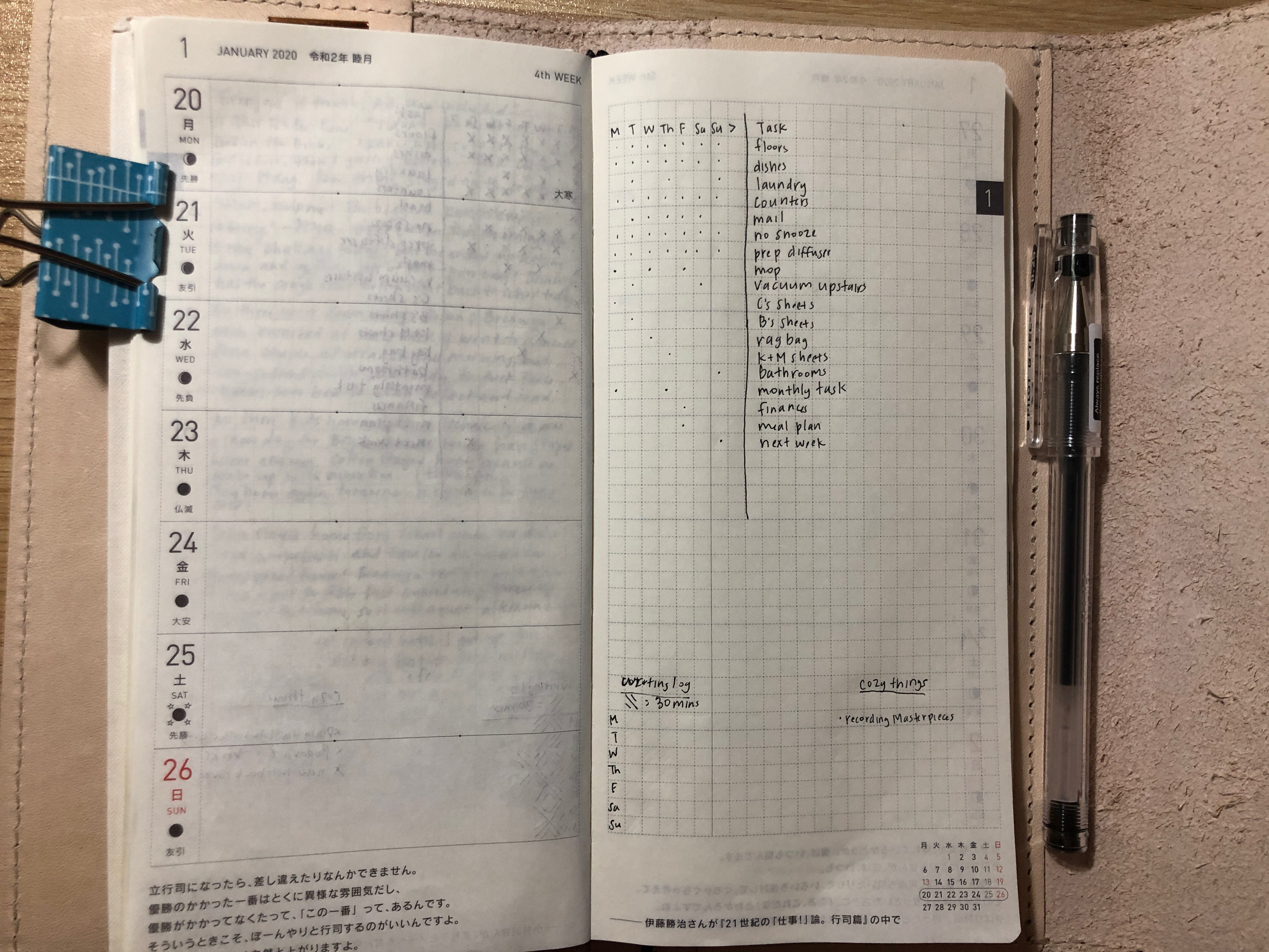Happy Monday, friends! I like to ease into my blogging my week by sharing last week’s spread and this week’s plan in my Hobonichi Weeks. It helps me reflect on my routine and think about how it can be tweaked to optimize my homemaking.