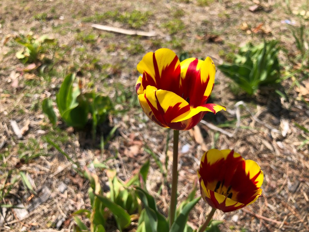 The tulips pictured are our survivors – the rest have been plucked or stomped. But aren’t they gorgeous? Overall, we didn’t get as many blooming tulips this year so it’s probably time to replenish our bed. We’ll be busy planting them this fall!