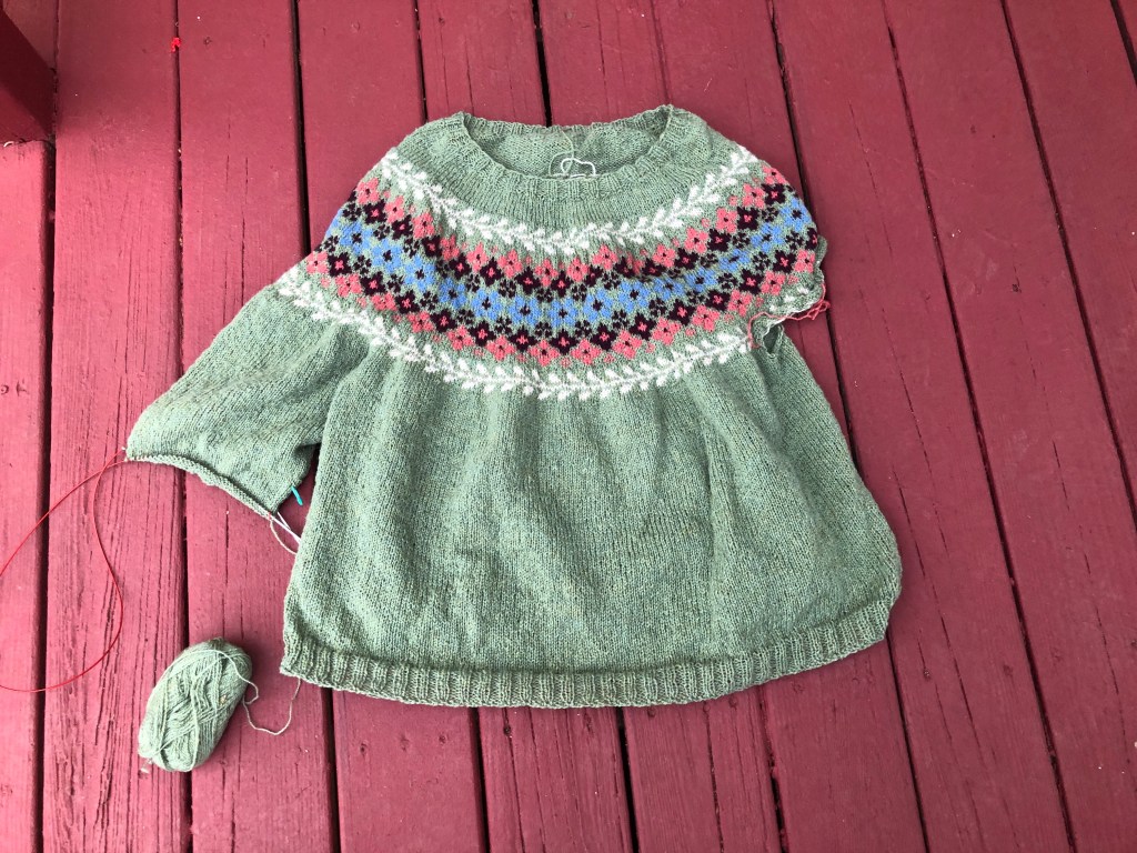 I’m finding that I have more knitting time now that Bug is back at his autism treatment center. Even with Bear and Birdie home, things have slowed down a lot. I can resume my habit of knitting while Birdie naps because Bear is excellent at independent play and I’m finding that I can knit a bit while we’re all outside playing in the morning. I miss Bug a lot when he’s gone, but I’m definitely taking advantage of the slower pace.