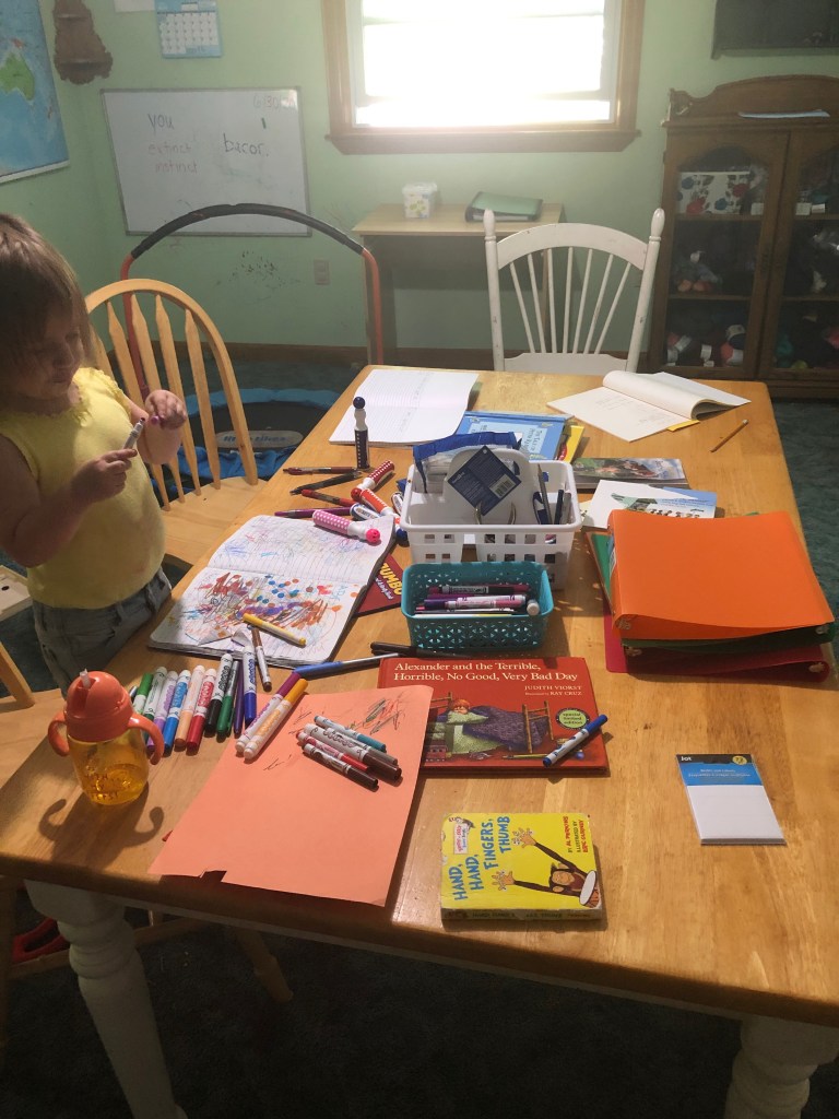 It’s been a good week for learning at home, which is encouraging. I purchased Torchlight Curriculum’s Level 1 and I’m so excited about getting started with it. It’s literature based and includes a LOT of reading guides, so I’ve spent most of my knitting time prepping for this curriculum. That’s okay – because it’s going to be awesome when we start! We moved the rocking chair from the baby’s room (where it was only used to hold blankets) to the dining room, and now we can snuggle into it all day long and read much more comfortably. I am so lucky.