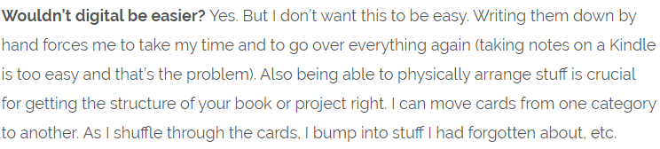 - It’s easier to copy/paste links into Evernote than to write them down onto index cards.