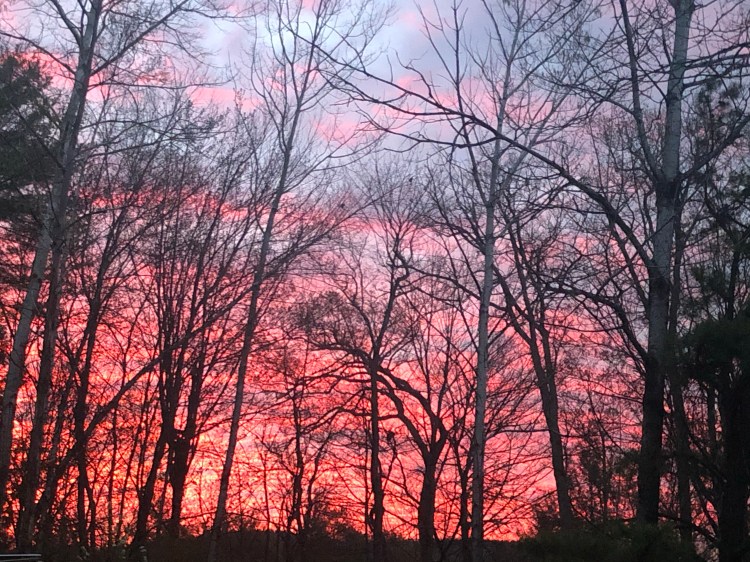 + This was my view while journaling on Monday morning and I ran outside to take a picture of it. The bird calls were captivating while I was out there, so I returned to my desk and cracked open my window to let in their sounds; it was chilly but worth it. The pinks and purples of the sky only lasted a few minutes, so I was lucky to look up when I did!