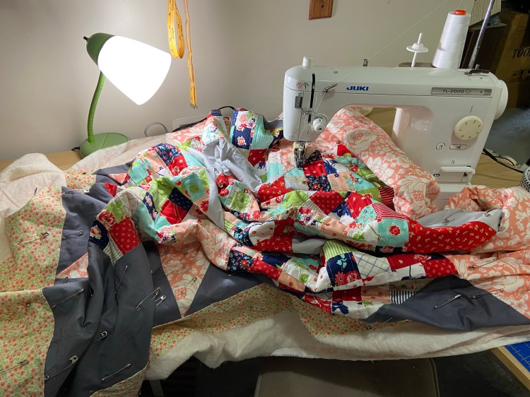 I have been quilting – just half an hour a day – and making progress on a languishing project. It has been fun and I am so close to having another finished quilt. I’ll keep plugging away, just a little at a time, until it’s done.