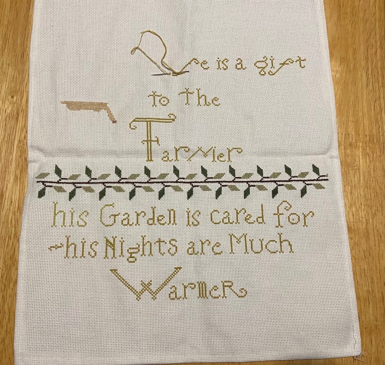 I have been cross-stitching. I picked up A Plump Wife for the first time in about a year and it still makes me laugh. I also started on The Flower a Day project — I picked this up because Mary was planning to do it for her 100 Day Project and I thought I might join along… but I decided to bow out at the last minute. Now it’s taking the place of my morning journaling – I have stitched on this for about 10 minutes each morning this week. So really – it’s become more like a flower in 4 days instead of a flower a day, but that’s okay. I don’t think anyone is timing me!