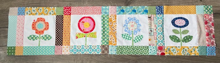 I’ve stolen tiny bits of time over the last few weeks and finished the fourth row of my Bloom Quilt. It’s not attached to the first three rows yet but I hope to do that early next week. And then I’ll only have four more blocks to go!! I’ll be honest: I’m a little sad that there are only four more blocks left on this quilt. I have enjoyed this much more than I expected. It’s a good thing that Lori Holt has several appliqué quilt patterns! I think Granny’s Garden will be the next one I tackle once I clear the decks down in my sewing space.
