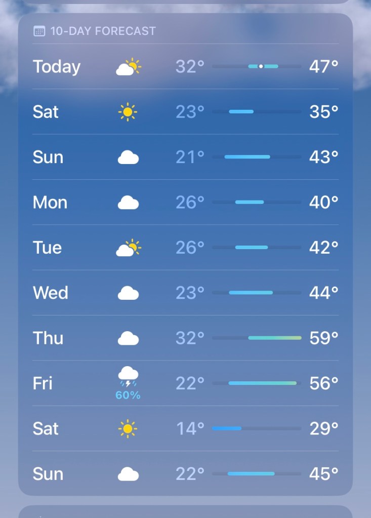 I think we always get a February thaw to help us get through those last weeks of winter — it’s nature’s reminder that spring is coming! I still remember the day of my bat mitzvah in February 1994. It was about 70 degrees outside, but the boiler broke in the synagogue, so it was freezing inside!