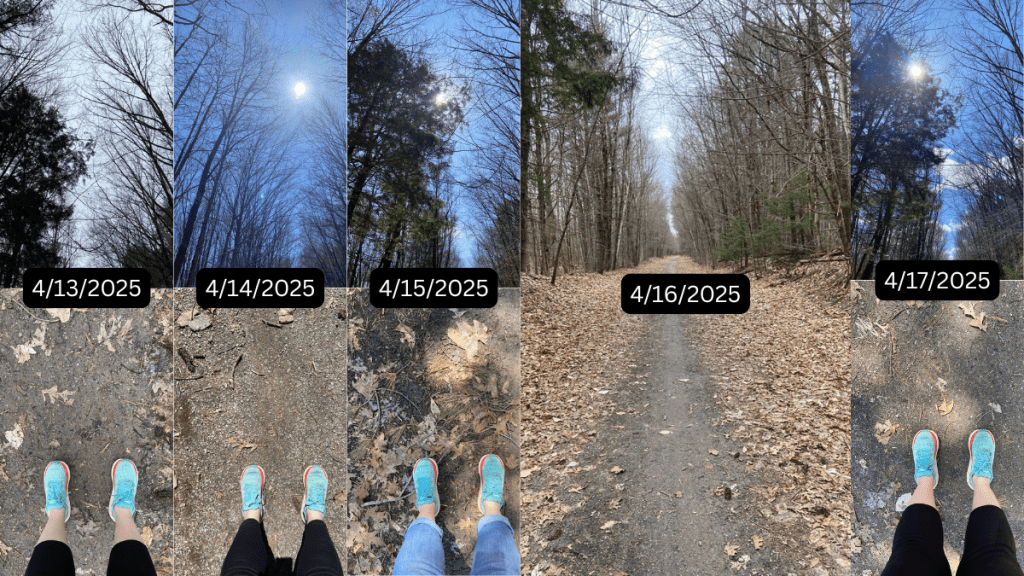 I’ve leaned into walking to get me through some of these harder moments. There was a period early in the process with Matthew that I was afraid to leave the house at all and I skipped a few days. I knew immediately that was a mistake – I started feeling resentful, penned in, and just plain stir-crazy. So I’ve made a point to take an hour nearly every day and get in my 3 miles.