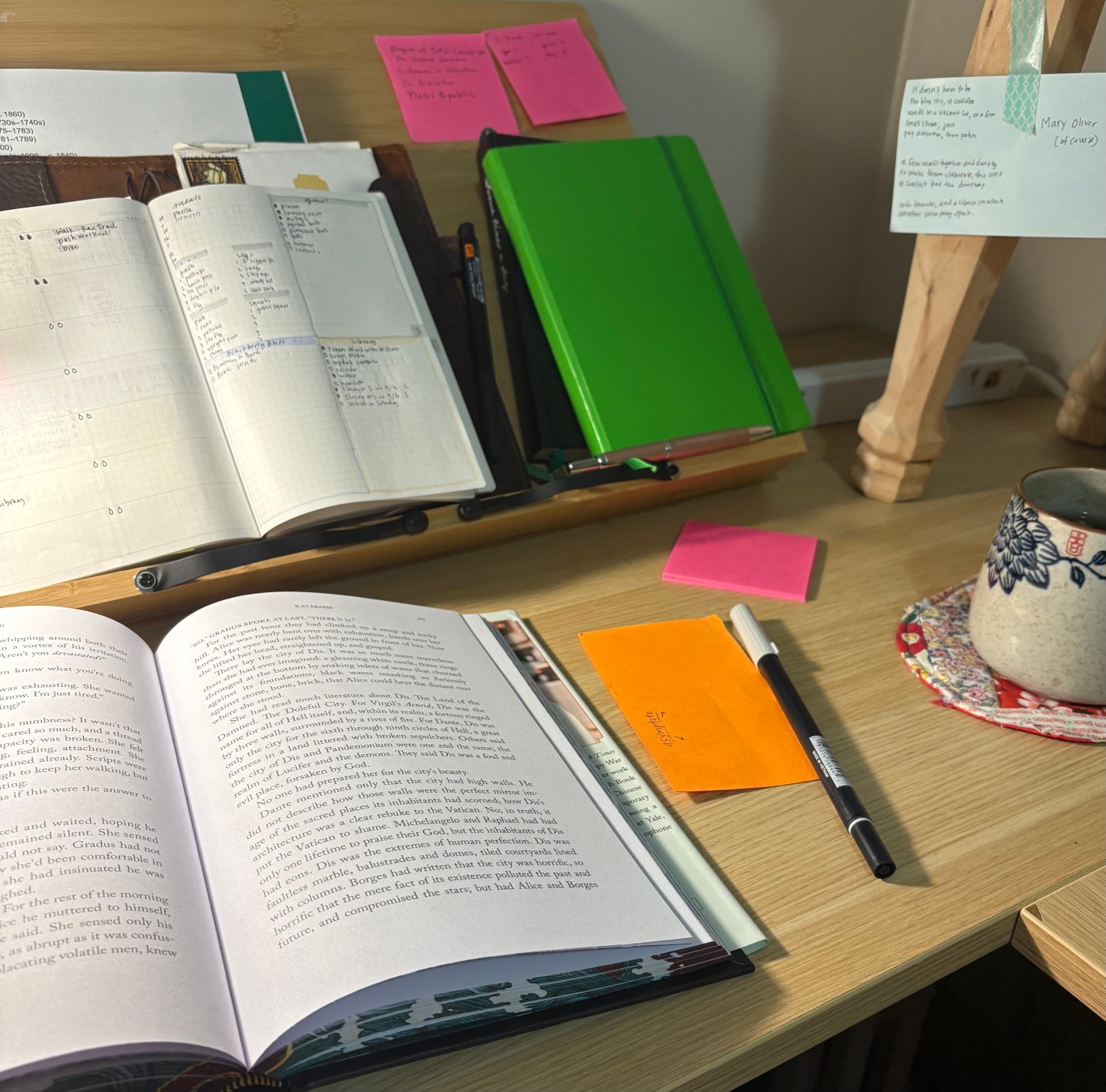 Last week I shared that my Thinking Hour has been hit or miss, but I managed it every day this week. I’ve mostly been counting my early morning time as my thinking hour. That’s not how I envisioned it, but that’s okay. Last week I used that time to practice Latin (3x) and to finish my book of Hannah Arendt essays (more below in the Reading section).