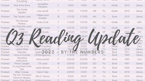 Can you believe that we're over 3/4 of the way through 2020? I try to take stock of my reading life every quarter by checking in with google sheets and the pivot tables I use to track lots of variables. Even though I prefer analog methods for many things in my life (I also keep... Continue Reading →